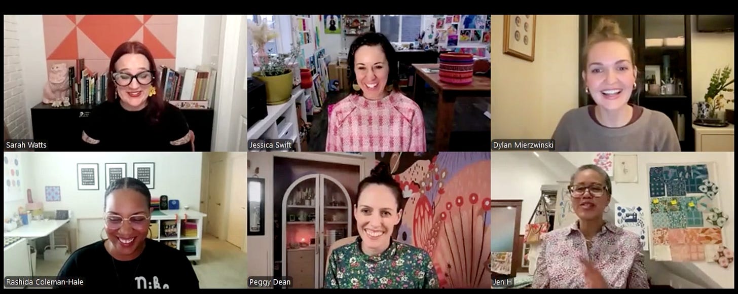 Last month, Jessica Swift and I hosted the Pattern + Process Variety Show, and wow—it was a blast. If you missed it, this was an incredible event for surface designers feeling stuck, overwhelmed, or just curious about how others make their art (and income) work. I left the event feeling incredibly inspired - my heart is full, to say the least.