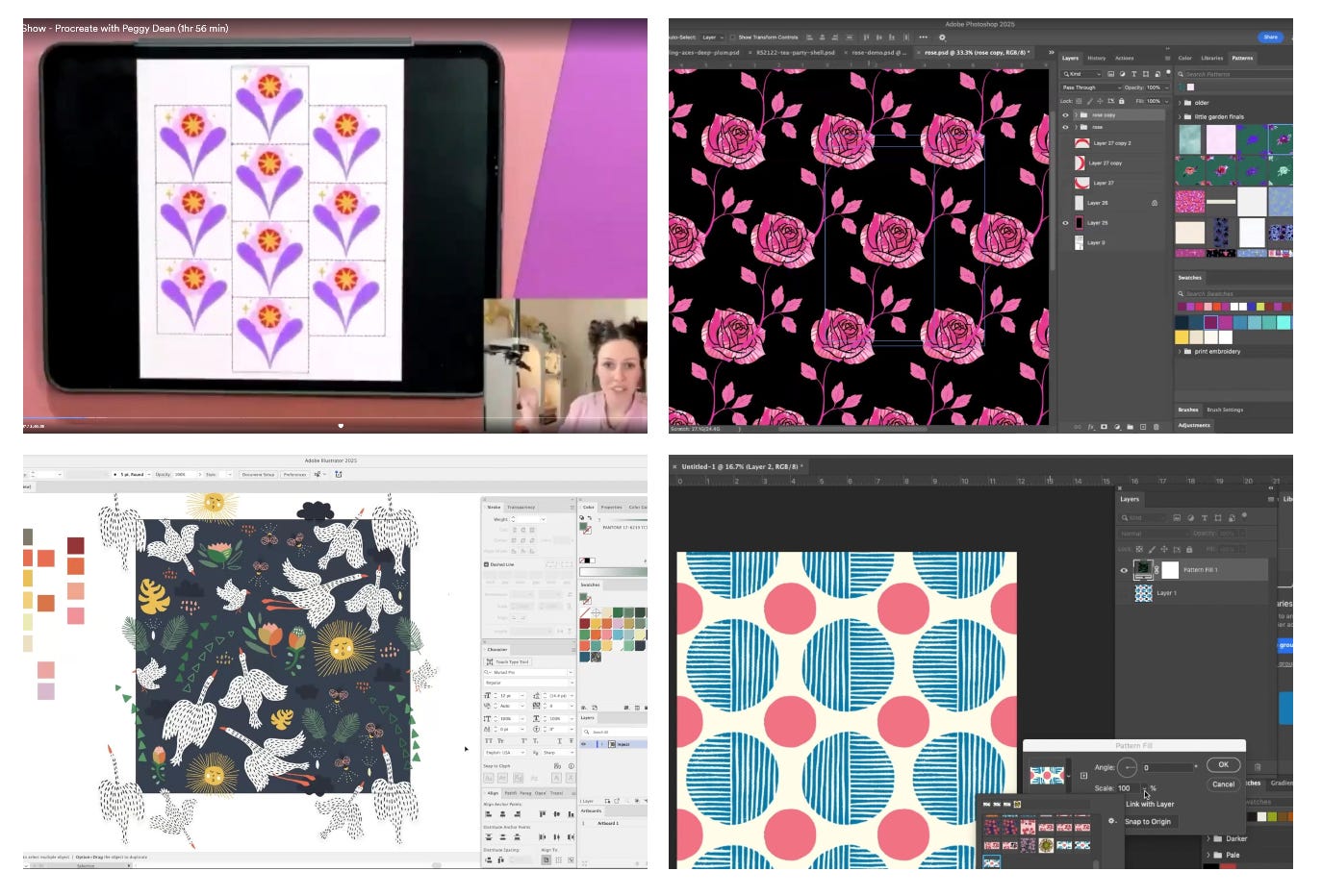 We packed this thing with value —demos, convos, and insights from artists we love. You'll see pattern workflows in Procreate, Illustrator, and Photoshop from some incredible guests like Jen Hewett, Peggy Dean, Jessica Swift and me. We also added special bonus sessions with Rashida Coleman-Hale, Dylan Mierzwinski, and Melody Miller.